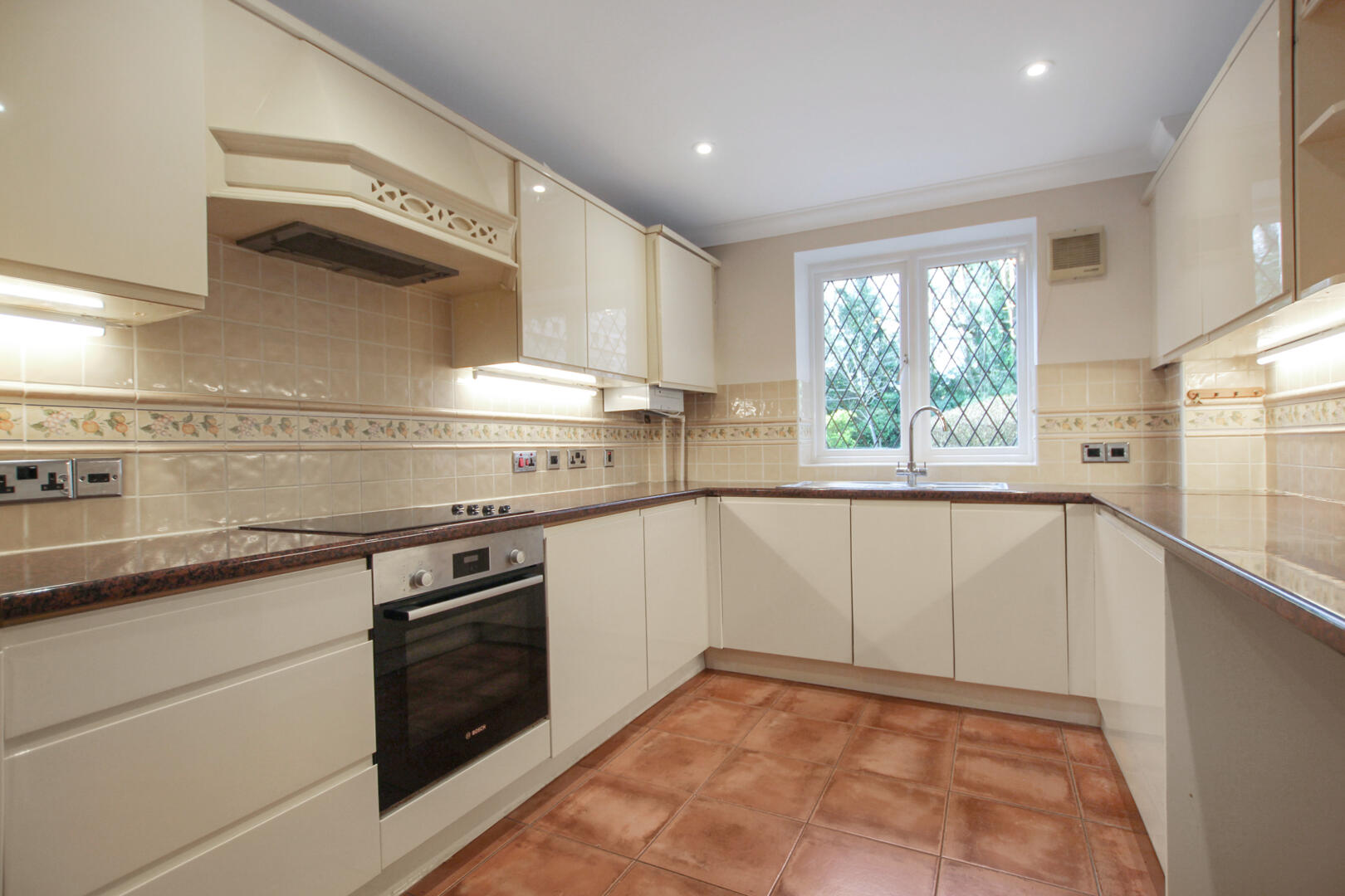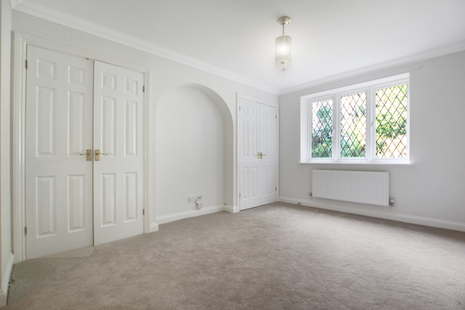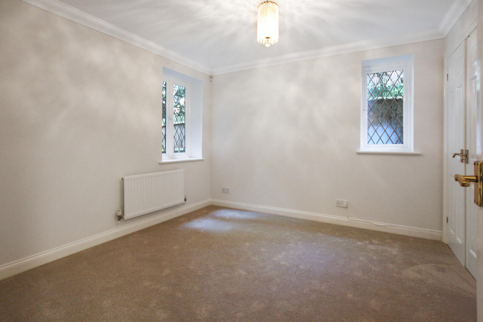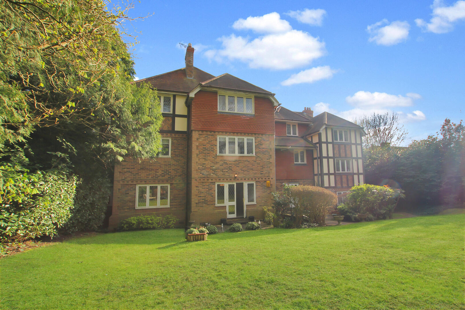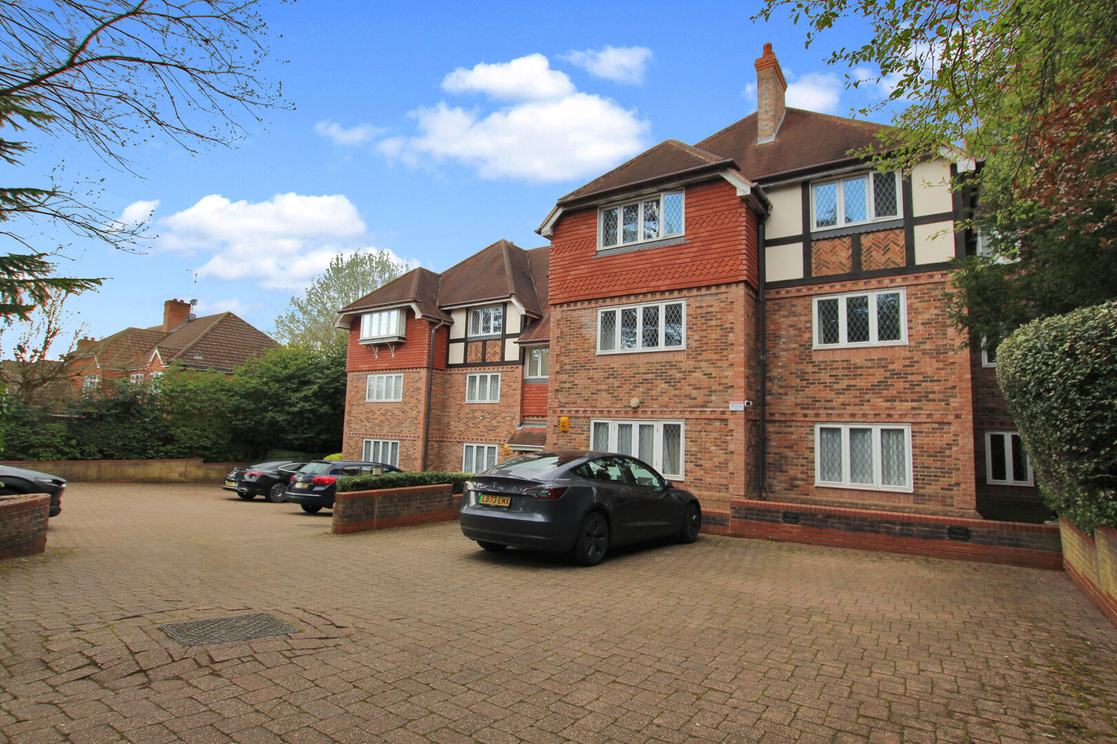 The development is securely positioned behind electric iron gates, with the apartment occupying a ground floor position and benefiting from French doors that open directly onto the communal gardens. Internally, the property offers two generous double bedrooms, both featuring fitted wardrobes, with the principal bedroom enjoying an en-suite bathroom. There is also a separate family bathroom, a spacious reception room, and a well-appointed fitted kitchen.